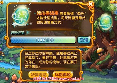 玩家的冒险之旅将引领他们来到宠物园地图中的神秘地点——独角仙踪地图。一旦进入此地图,玩家需要与仙灵独角兽展开对话,获得一颗珍贵的独角果。随后,将独角果孵化于附近的树上,即可诞生出可爱的独角兽伙伴。